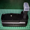 互換バッテリー最大使用可能本数:2 このタイプのグリップの場合、手順さえ誤らなければ、互換バッテリー2本で使用できるので、純正バッテリーを持ち歩く必要がない。 左の電池室には、バッテリーの有無を検知するスイッチが実装されている。(機能しているか否かは未確認。) |